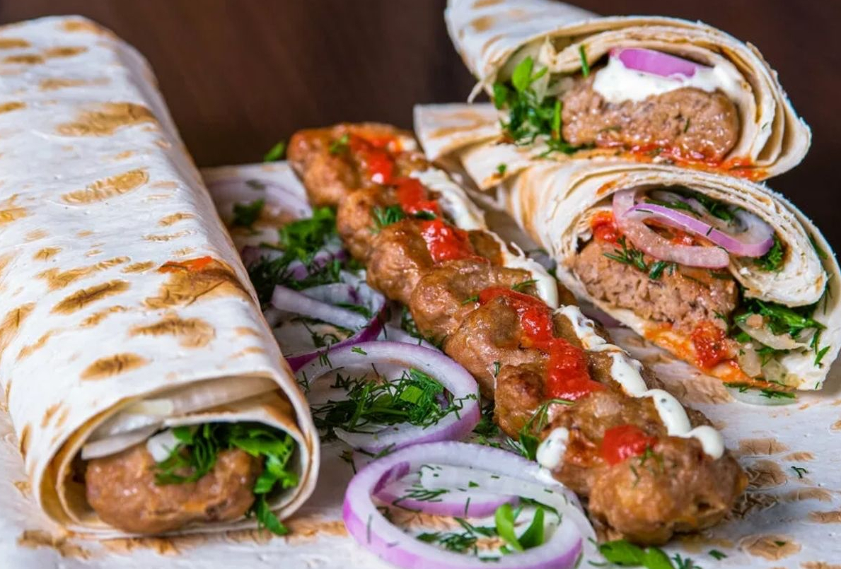 Люля Кебаб. В Лаваше С чесночным соусом,и домашней острой Аджикой.
